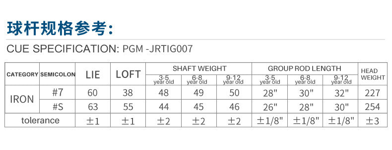 PGM JRTIG007 high quality custom golf irons brand new junior golf irons